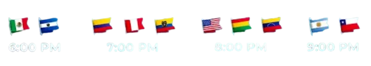 7:00 pm a 9:00pm COL Horario de inicio en otros países